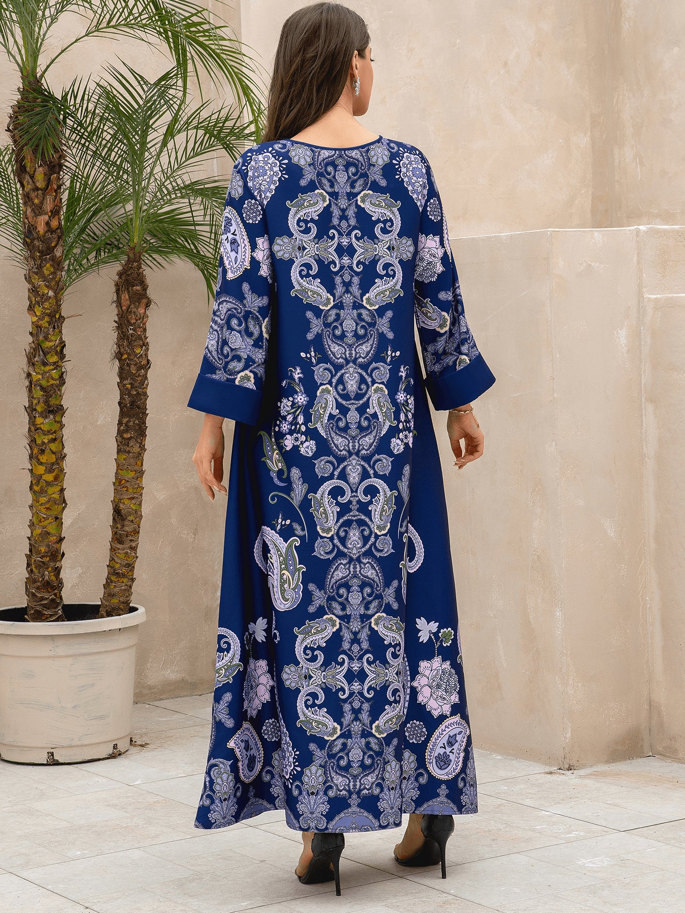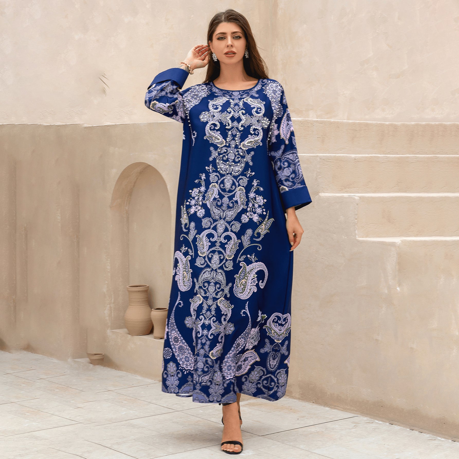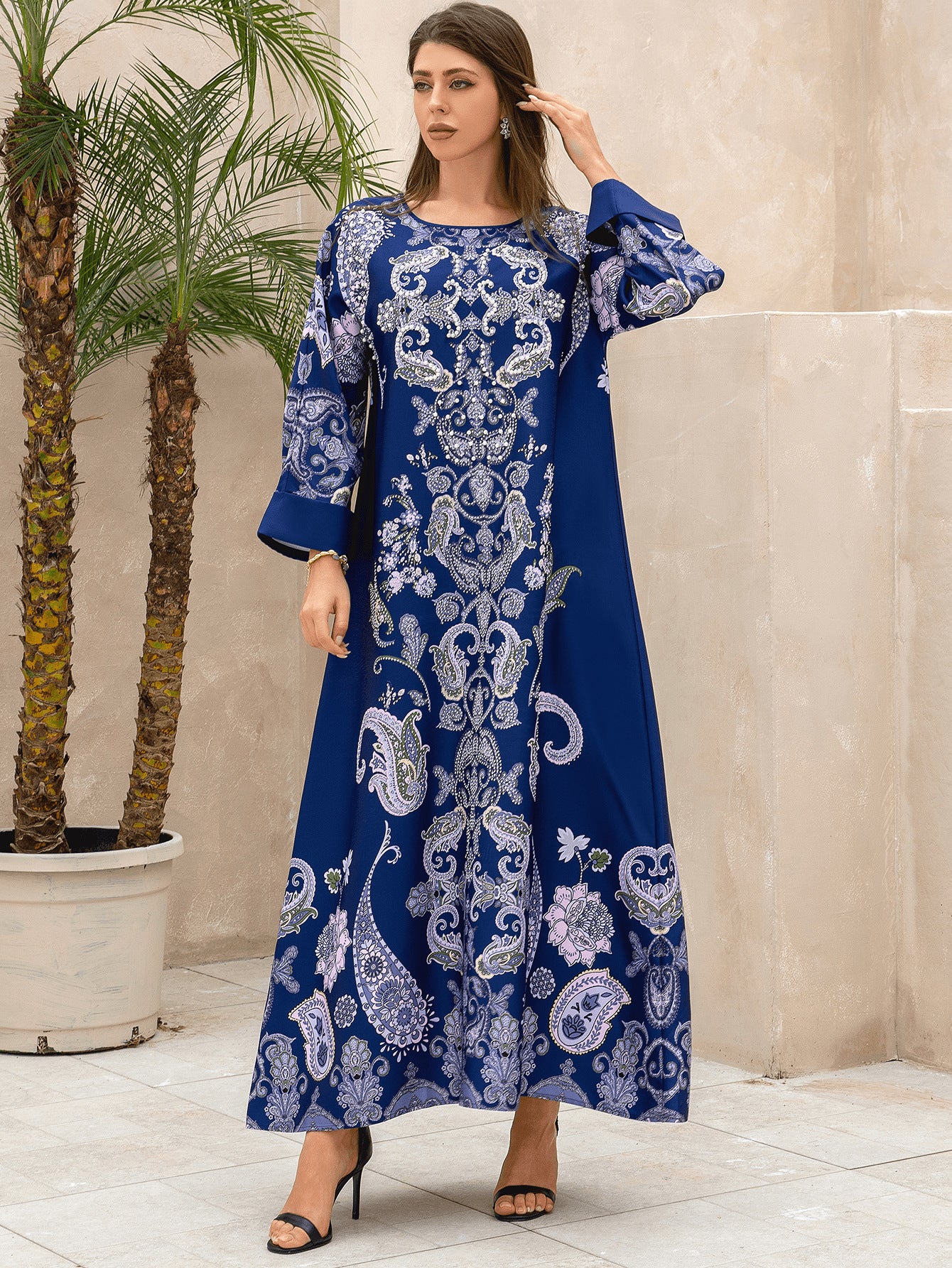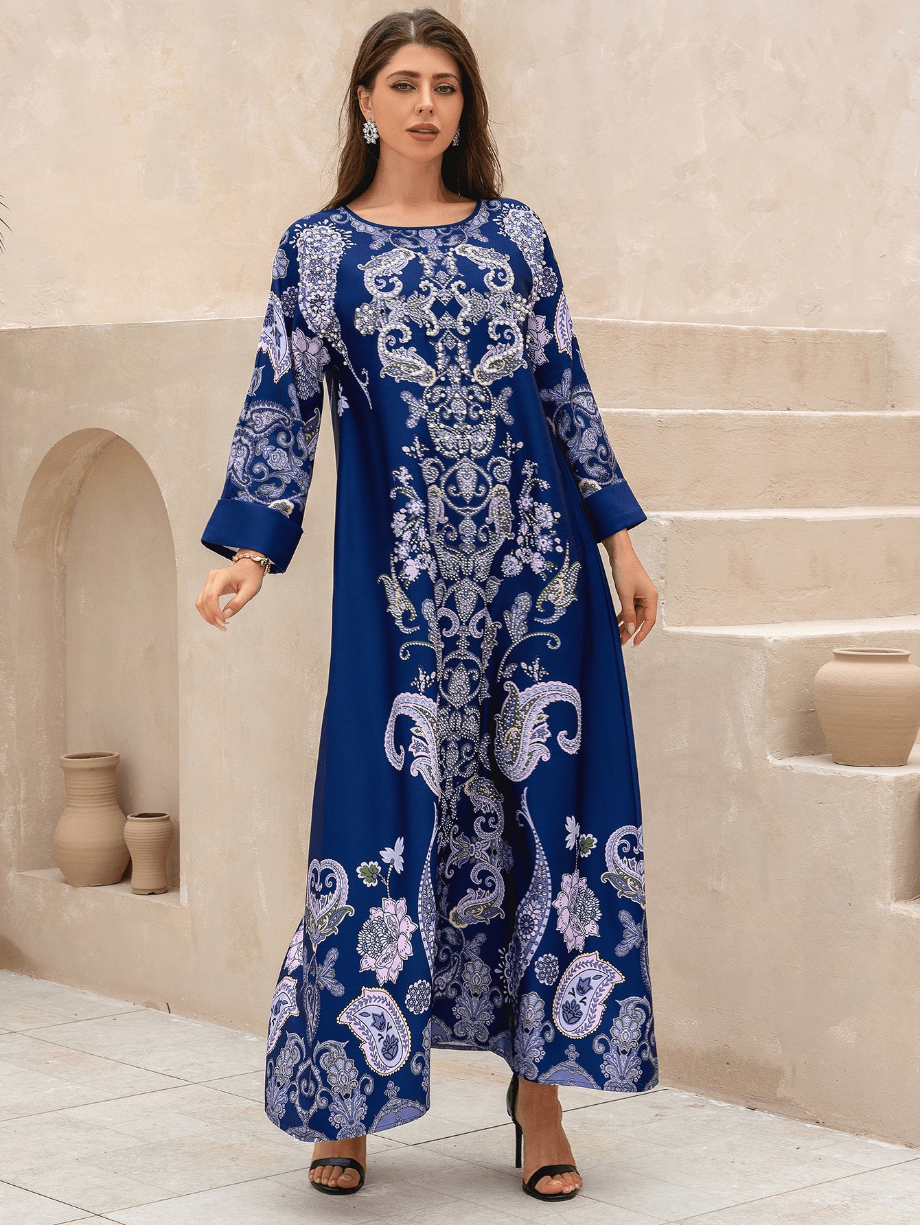 Abaya Floral Rhinestone Beaded Party Evening Gown